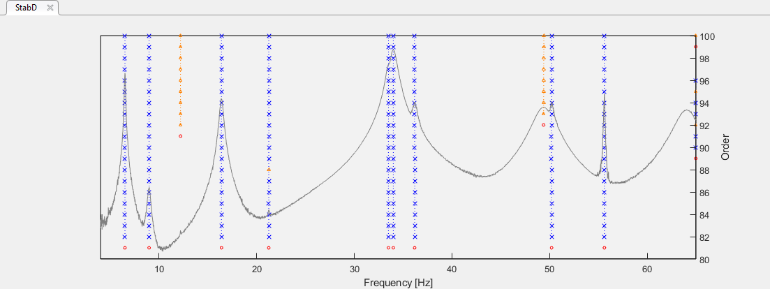 To evaluate the pertinence of this despite that it does not fully satisfy the stabilization criteria, click on hte highest yellow triangle (last order) of the column at 50Hz in the StabD figure.