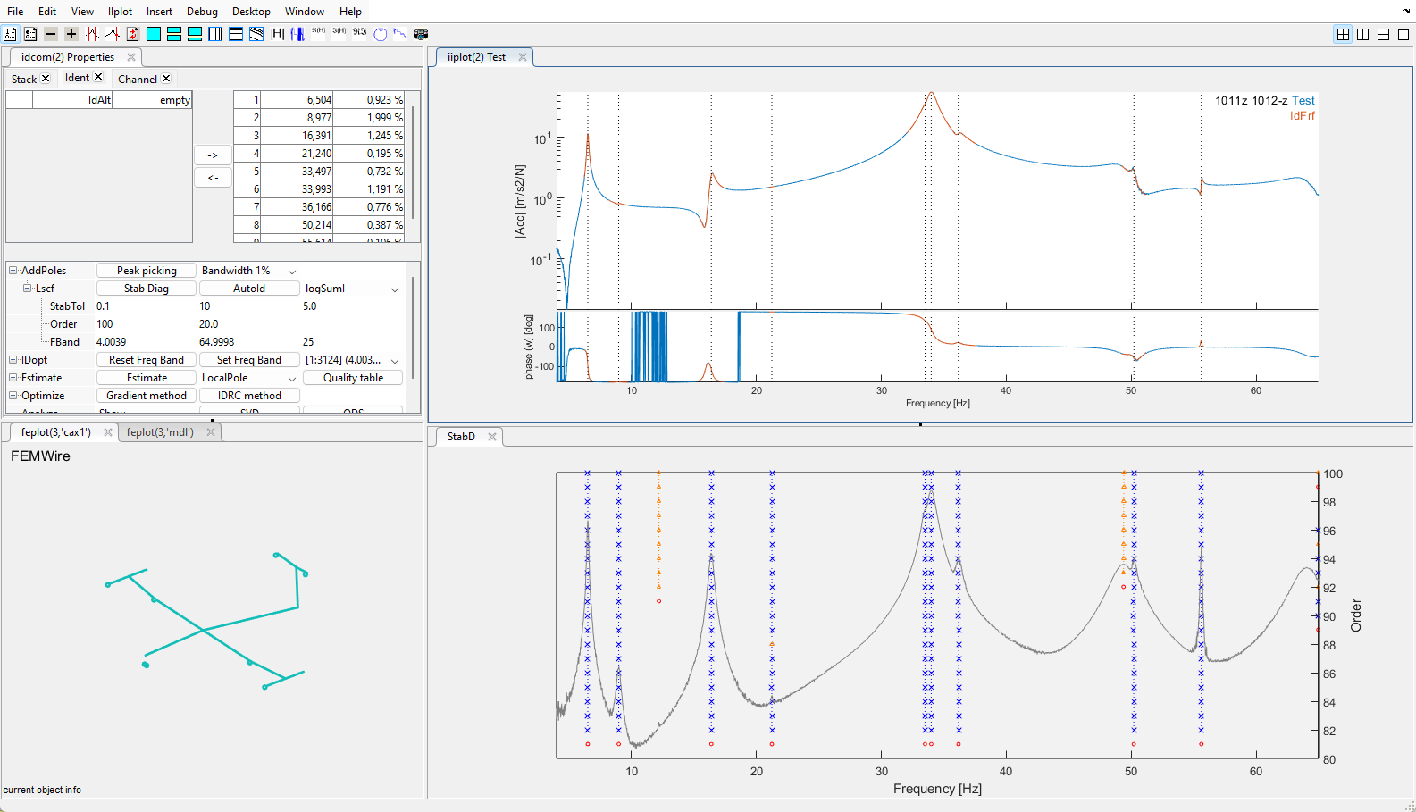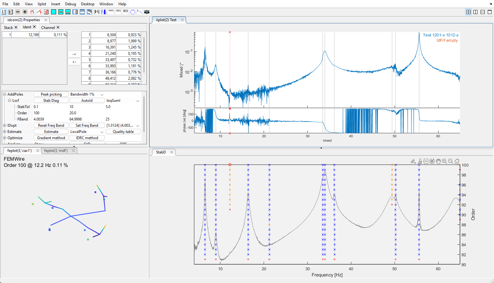 Finally, the mode estimator on top of the stabilization diagram shows that a mode at the right of the frequency band is probably there but not identified by the LSCF algorithm. This case can be handled by manually adding a pole using the single pole estimator.