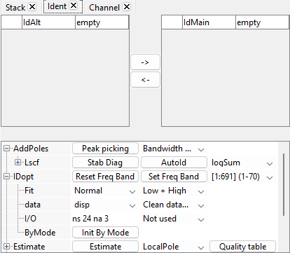 2. Run To initialize the identification by block, activate tab Ident, expand IDopt and click on Init By Mode.