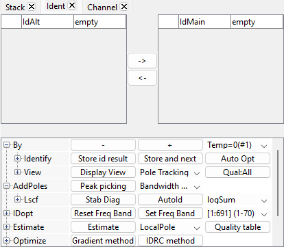 8. Run Pole tracking with parameter (here temperature) can be analyze with SDT views. In tab Ident, at line Identify, select Pole Tracking and click on View.