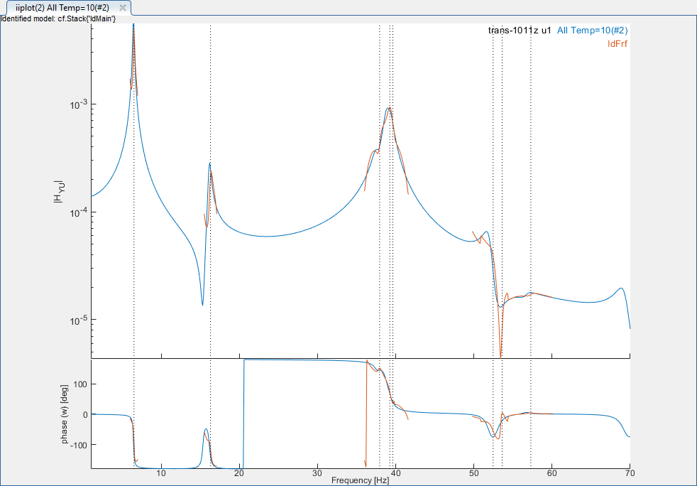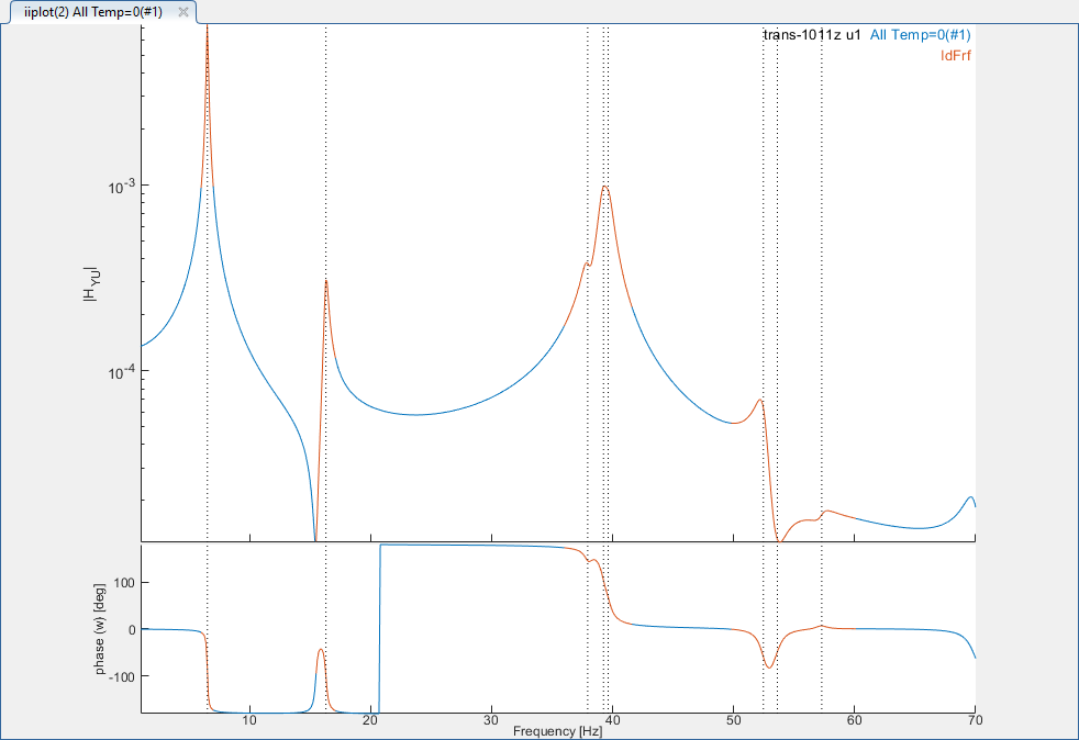 4. Run Once the identification of the first block is satisfying, store the result by clicking on Store and Next. The button callback stores the poles of the first block of transfers and load the second block of transfers while keeping the poles.