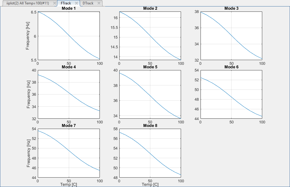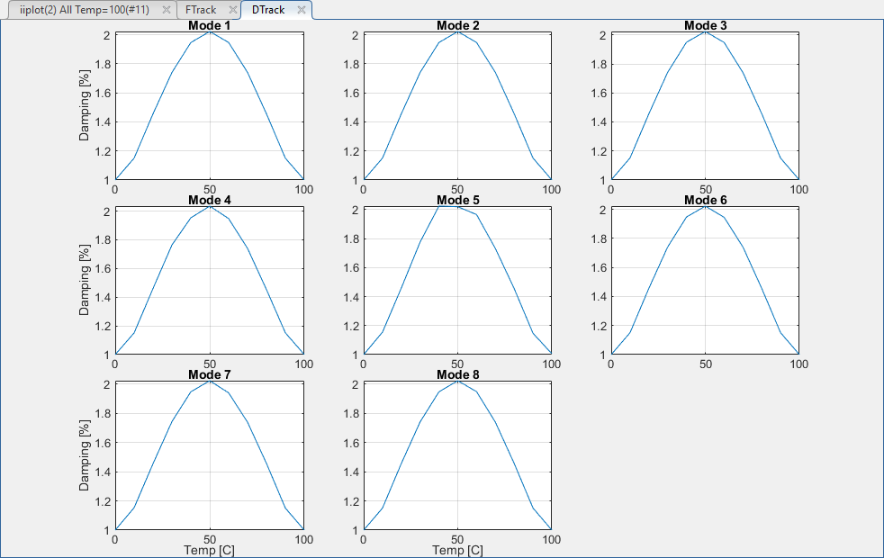 9. Run Both frequency and damping evolution with temperature can be displayed all at once. Select Pole Tracking fvsd and click on View.