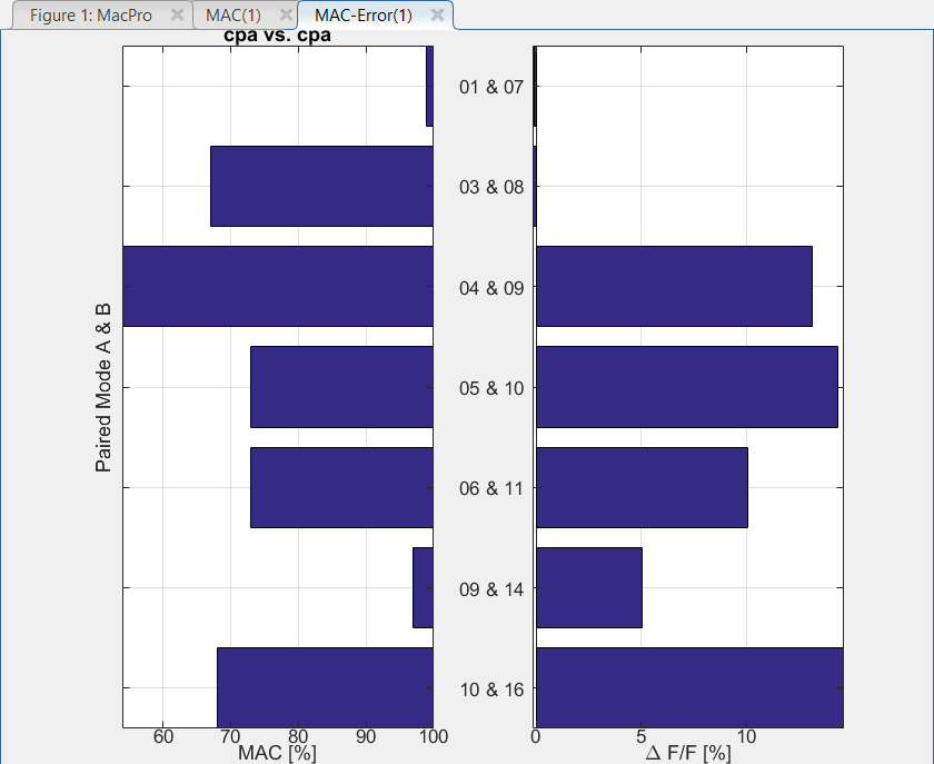 You can see here on the left the MAC value and on the right the relative frequency shift between the two sets of paired modes.