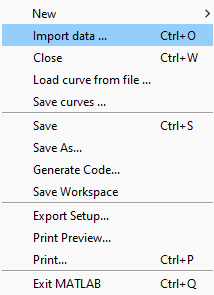 Click on Import (or Import in DockId which is used to build dockId if the loading is performed in a feplot or an iiplot figure outside a dockid).