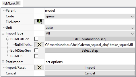 - BuildStepGen : Should be updated with a capture of the window for step selection. Allows defining model Case resolution for a specific results step. By default femlink imports all data in the model. To recover specific boundary conditions relative to a specific computation step (if defined in the input and supported by the femlink function), one can either provide the step number or ask for last to let femlink find the last step defined in the model load case. The third column button allows selecting a step in an interactive way. By default, this option not is activated.