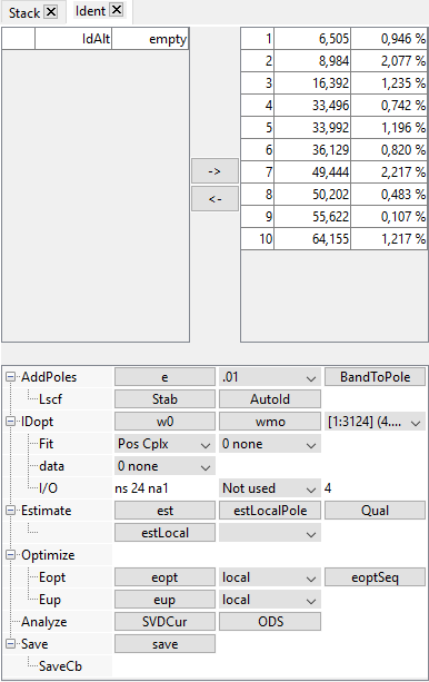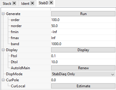 The StabD tab is used create a stabilization diagram with the algorithm LSCF and provide tools to extract poles from it.