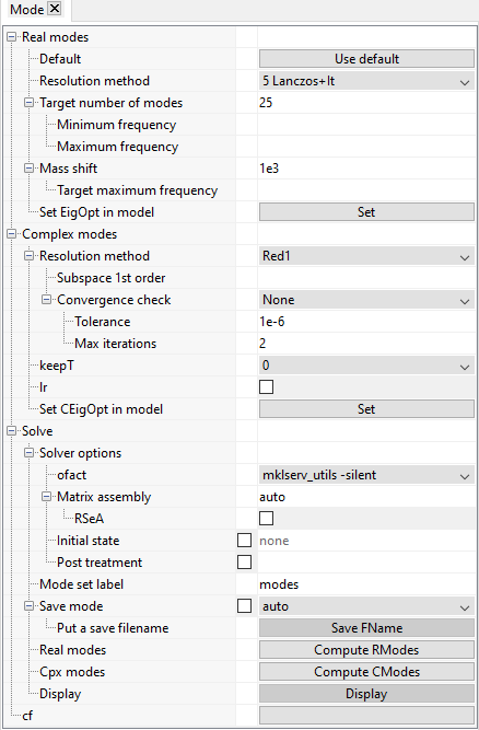 Real modes This section and the associated sub-tree provides options on the computation of real modes