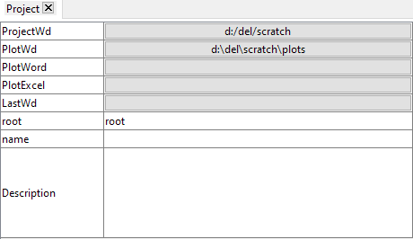 ProjectWd A button defining the working directory used for the project. This is where models and curves will be saved. Clicking on the button will open a dialog for interactive definition.