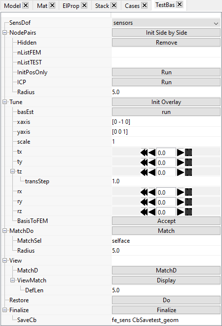 - NodePairs is used to initialize the FemTest dock in side by side mode. In this mode, the left tile shows the feplot promodel, the center tile shows the reference mesh and the right tile the SensDof mesh.