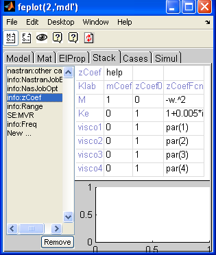 % external to fexf zCoef={'Klab','mCoef','zCoef0','zCoefFcn'; 'M' 1 0 '-w.^2'; 'Ke' 0 1 1+i*fe_def('DefEta',[]); 'Kv' 0 1 'par(1)'}; model=struct('K',{cell(1,3)}); model=stack_set(model,'info','zCoef',zCoef); model=stack_set(model,'info','Range', ... struct('val',[1;2;3],'lab',{{'par'}})); %Within fe2xf w=[1:10]'*2*pi; % frequencies in rad/s Range=stack_get(model,'info','Range','getdata'); for jPar=1:size(Range.val,1) Range.jPar=jPar;zCoef=fe2xf('zcoef',model,w,Range); disp(zCoef) % some work gets done here ... end