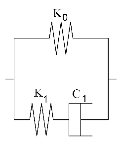 The example of the standard viscoelastic model is detailed here as an illustration. The standard viscoelastic model, also known as Zener model, is composed by a spring (K0) in parallel with another spring (K1) and a serial dashpot (C1) as displayed figure 4.5.