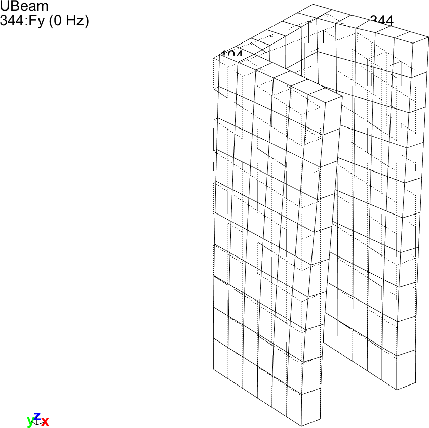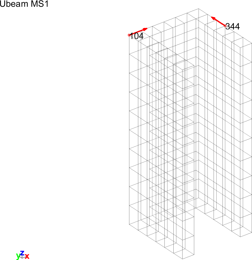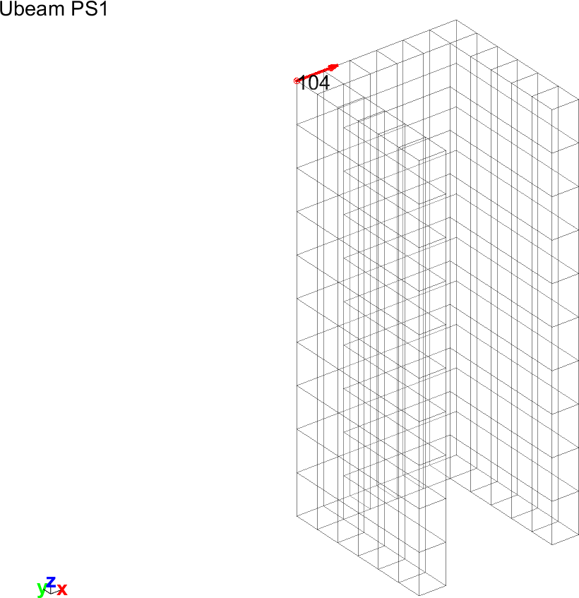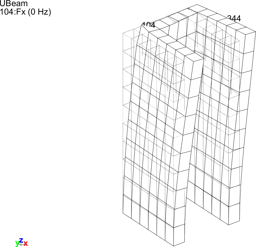 Figure 4.1 shows the finite element mesh of the U-beam with a sensor added on node 104 in the x-direction.