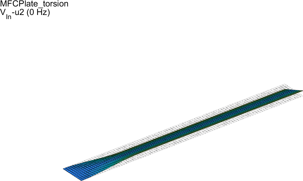 . The torsion can be easily seen by looking at the deformed shape resulting from the combination of the two MFCs with opposite signs which cancels the bending effect, as shown in Figure 7.27.