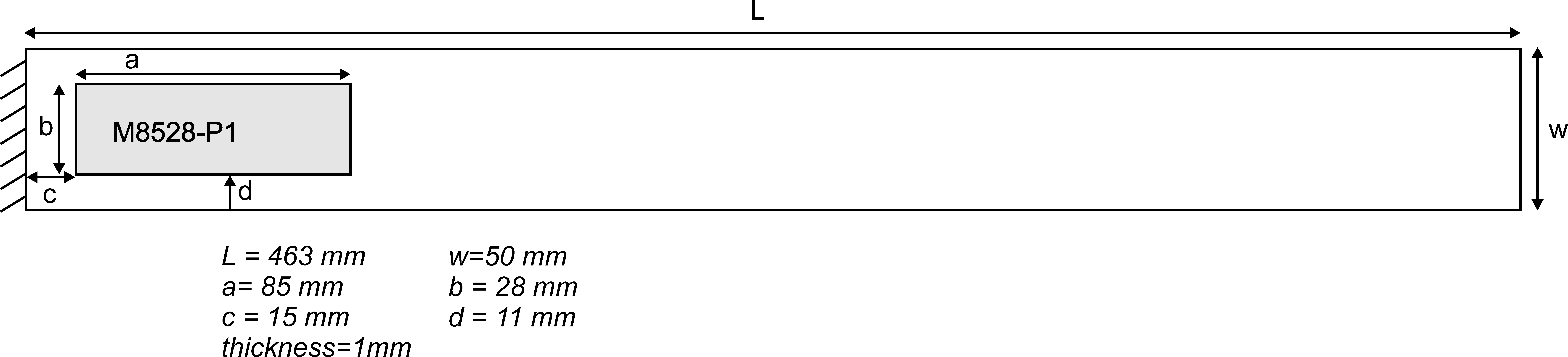 | Figure 7.25: Geometric details of the aluminum plate with 2 P1-type MFCs |