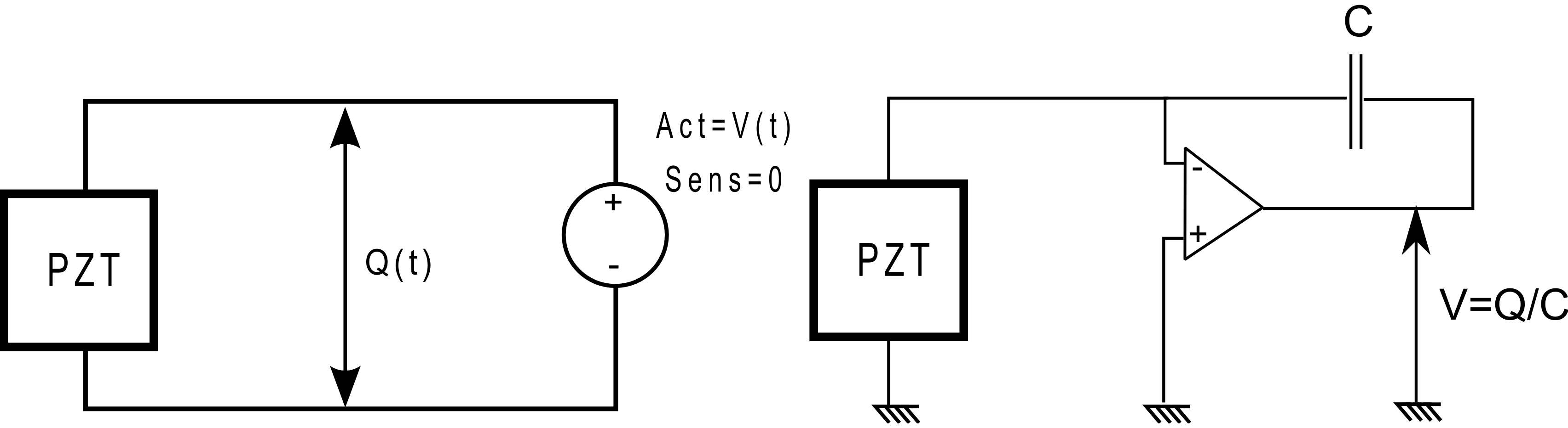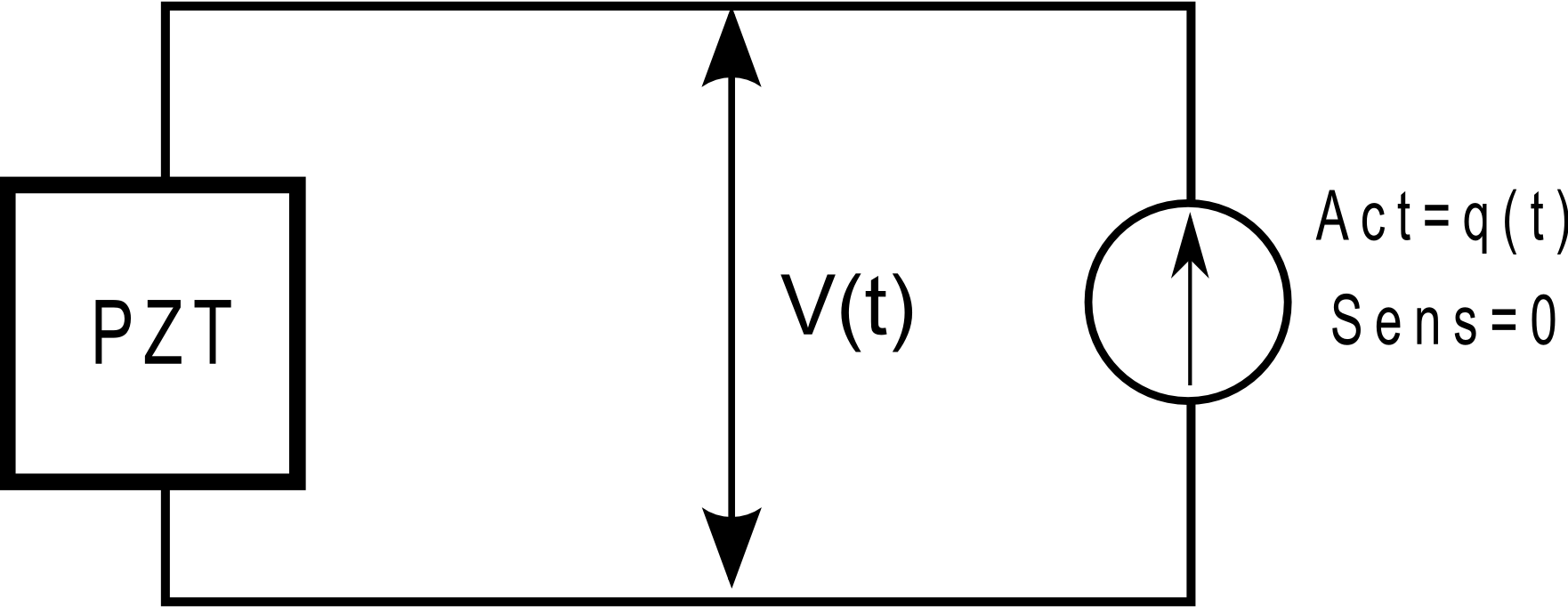 Short circuit (SC), charge sensors configurations correspond to cases where the potential is forced to zero (the electrical circuit is shorted). In (10), this corresponds to a case where the potential (electrical DOF) is fixed and the charge corresponds to the resulting force associated with this boundary condition.