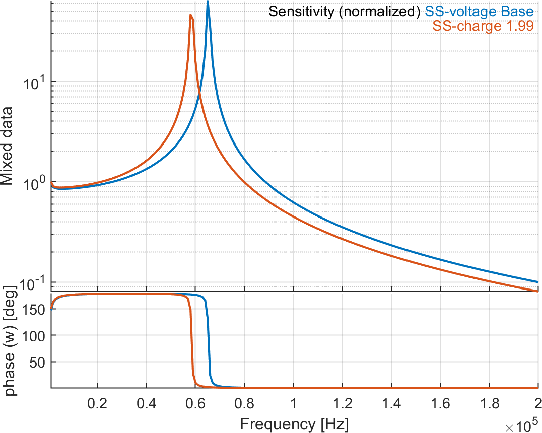 Figure 8.6: Comparison of the normalized sensitivities of the sensor used in the charge and voltage mode
