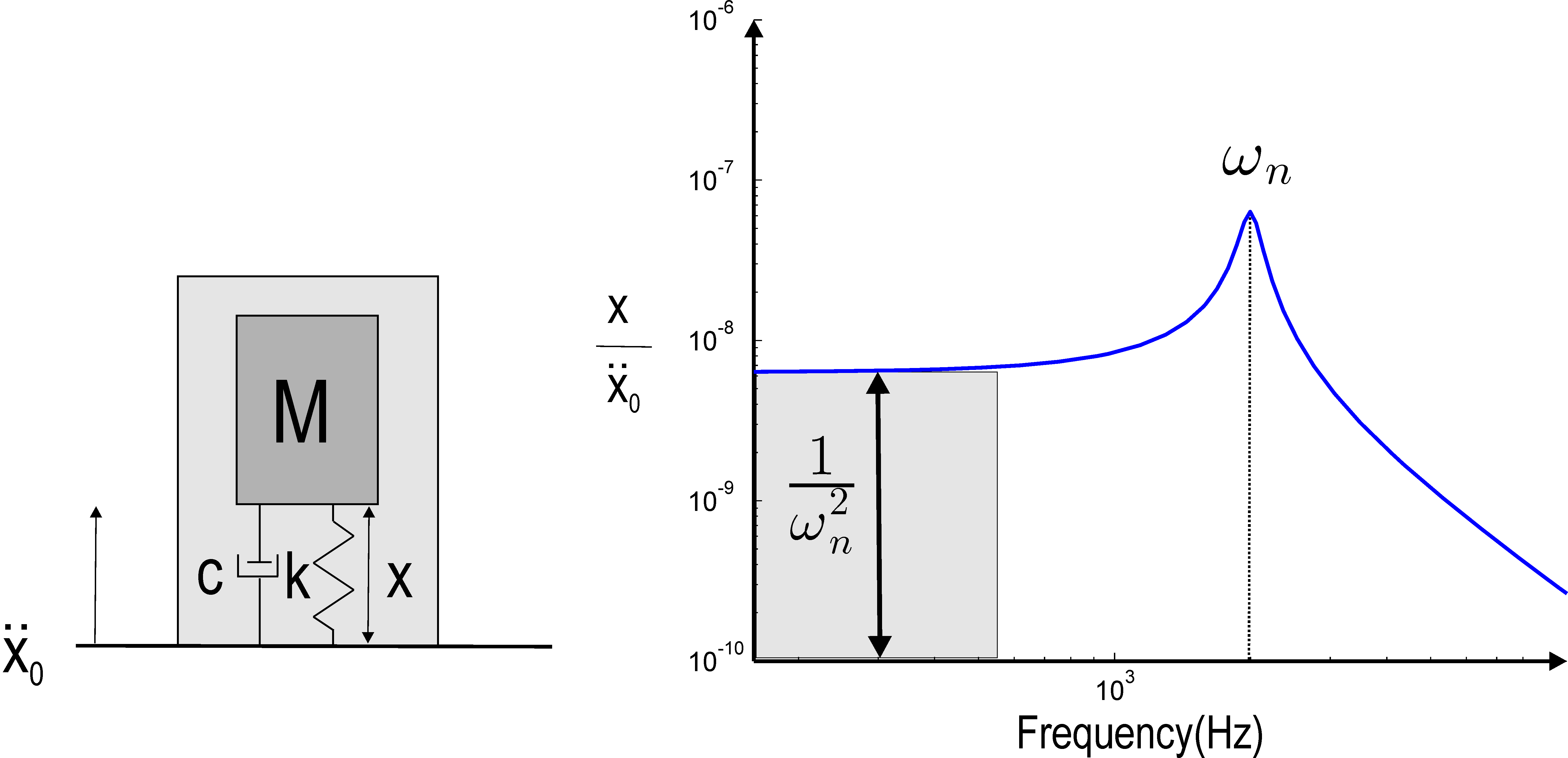 with ωn = √k/M and ξ=b/2√kM and for frequencies ω << ωn, one has,