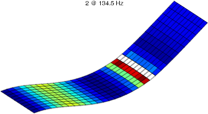 Up=d_visco('meshplate upreset'); Up=stack_rm(Up,'mat'); Up = fevisco('addmat 101',Up,'First area','ISD112 (1993)'); Up = fevisco('addmat 103',Up,'Second area','ISD112 (1993)'); def=fe_eig(Up,[6 10 1e3]); MVR = fevisco('makemodel matid 101 103',Up,def); MVR=stack_set(MVR,'info','Freq',[20:.5:90]'); RESP=fe2xf('directreduced',MVR); % Result in XF(1)