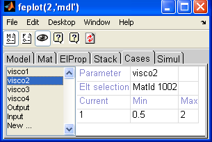 One can then visualize each parameter using feplot model properties windows, within the Case tab